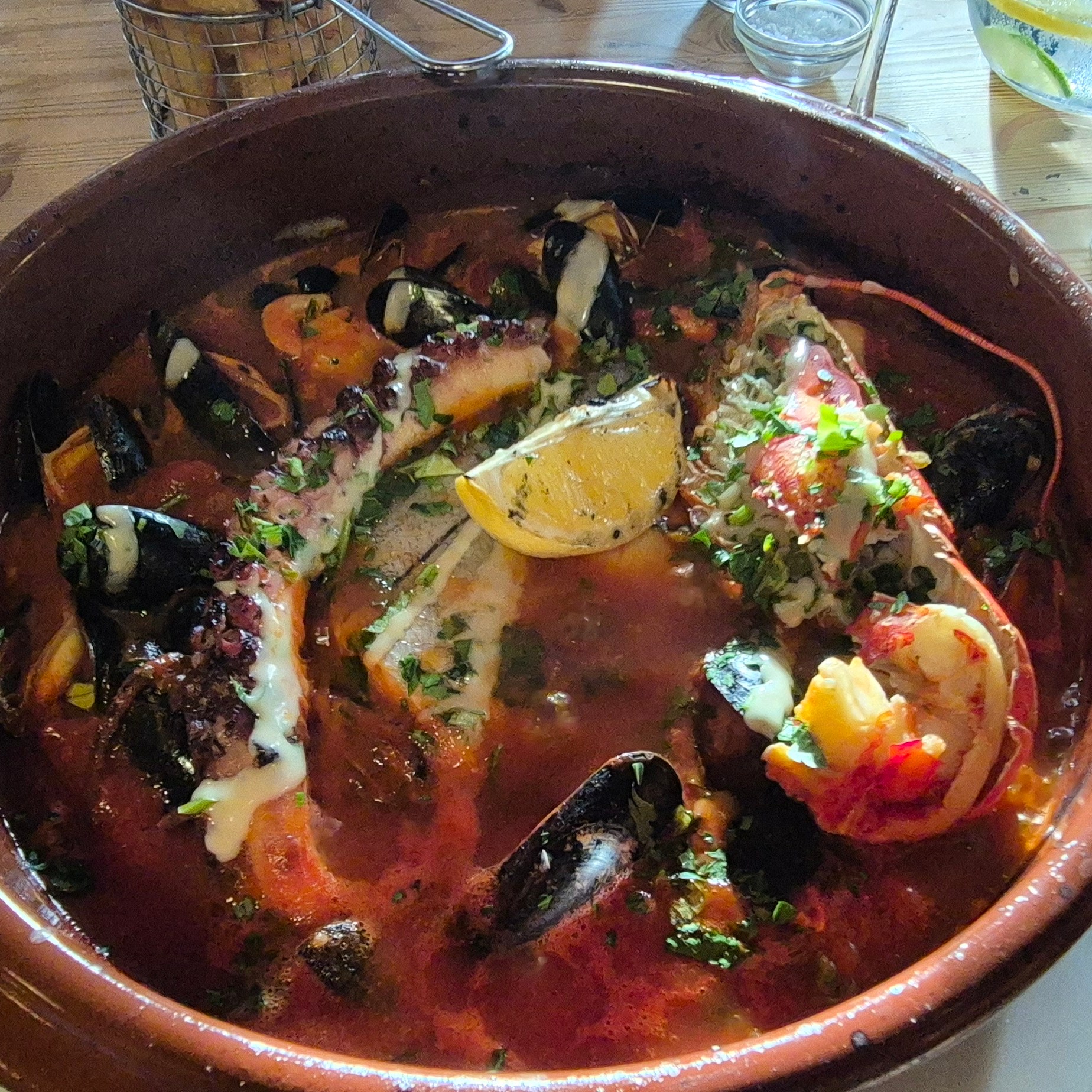 Before I entered the FODMAP elimination stage we took my brother out for a curry, and we caught with Richard at Claro’s in London, both of whom were hugely accomodating to my already ‘known’ gluten and dairy intolerances – as well as being pescatarian! – talk about being difficult!! Claro’s was quite unusual, hosting a lovely mediterranean focussed menu which included falafel prawns which were delicious, and an incredible Bread and Butter Pudding apparently…. the latter not being gluten-free unfortunately!