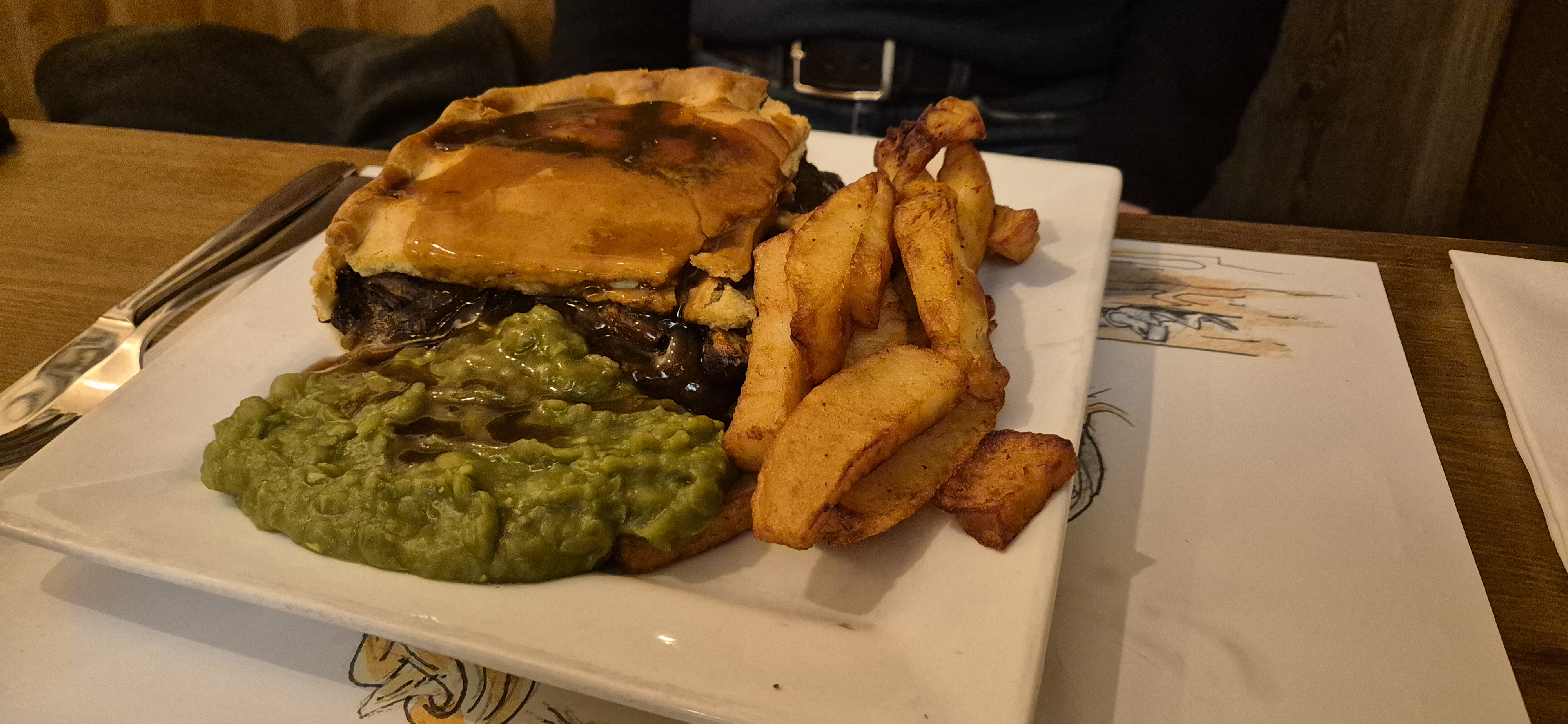 Thankfully we had looked at the menu before we arrived as otherwise it could have been a bit overwhelming. All of the pastry is Vegan, so a huge bonus for me as the butter could have been an issue. The pastry was delicious – and that is coming from me, who makes a pretty good vegan pastry! A good bite and full of flavour. I opted for the Tokara Pony, which was ‘Thai Red Curry with diced cod loin, onion, garlic, fresh root ginger and chillies with coconut milk. Keith had the Cleveland Bay, 3 cuts of beef, Beef Skirt, Brisket and Oxtail slowly cooked with black treacle, bacon, shallots, and chestnut mushrooms. Both were delicious, packed full of flavour and filling, even the potatoes, gravy and mushy peas were good. Possibly some of the best pies we have had outside home…. So, good in fact that we have changed our plans to come back again on Monday!