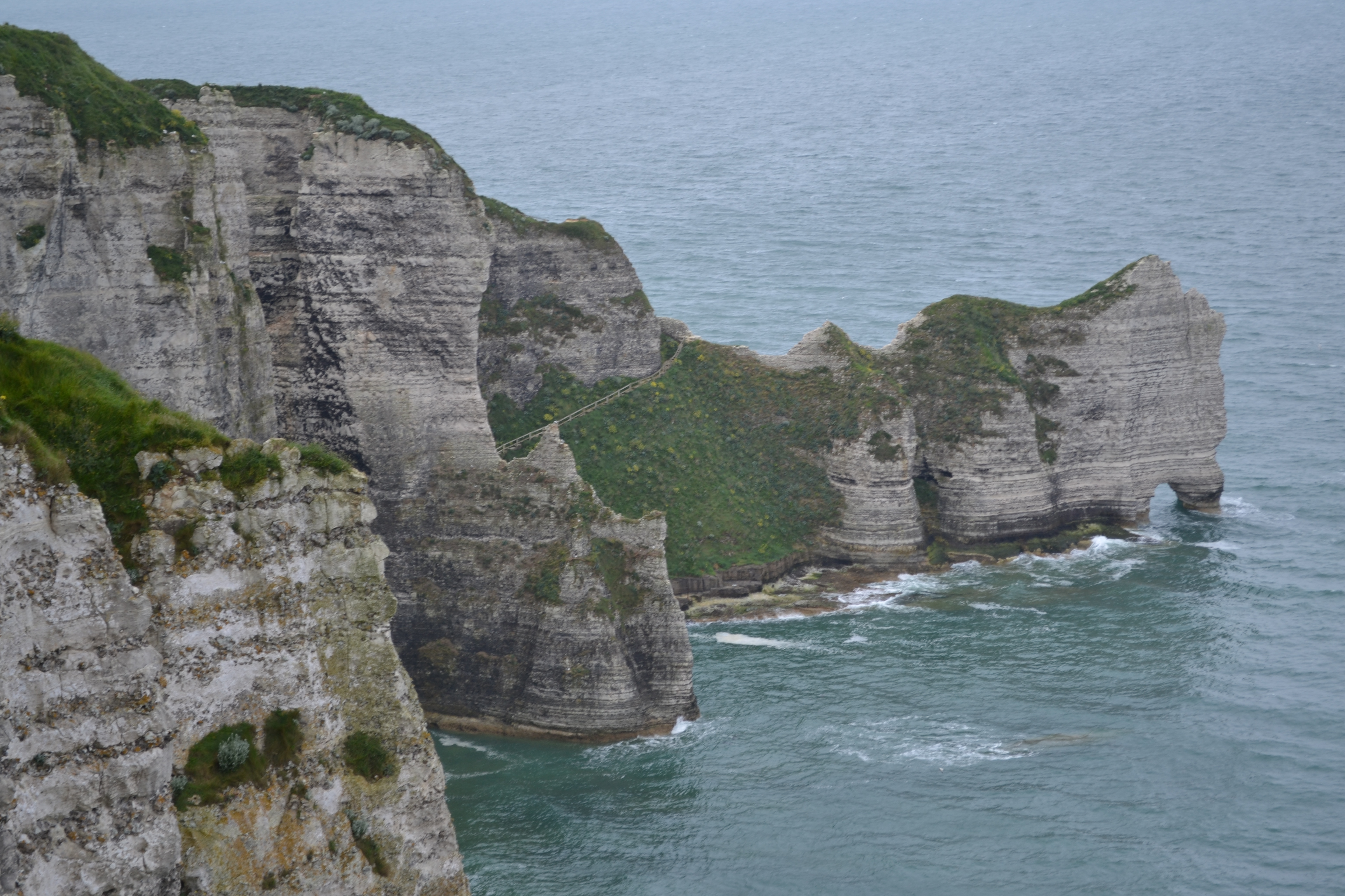 The town/village of Etretat is very pretty. All the houses and gardens walking into the town from the campsite are very pretty and well maintained; we thought we might have walked into the set of “The Stepford wives”… At the sea there are some impressive cliffs either side of the pebble beach, which looks like there is a bit of walking…rather than stay just for 1 night as we had thought before arriving, we have now changed our minds; not for the 1st time I’m sure 🙂
