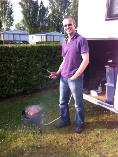 This time we weren’t cooking fish on the BBQ, but very tasty sausages and burgers… Yes, and Keith does like cooking with the “Chefie” tongs.