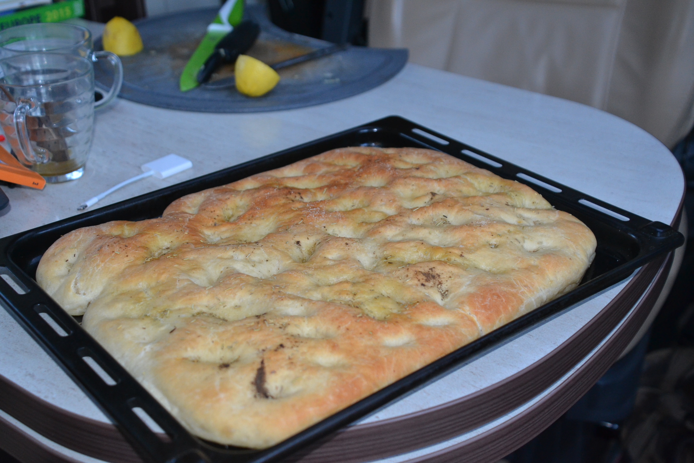 I, on the other hand have been inspired by the ‘Hairy Bikers’ who have recently finished a series called ‘Bakeation’ in different countries across Europe and decided to give the Foccacia a go…… and it turned out pretty good if I don’t say so myself and pretty easy to make in a motorhome 🙂