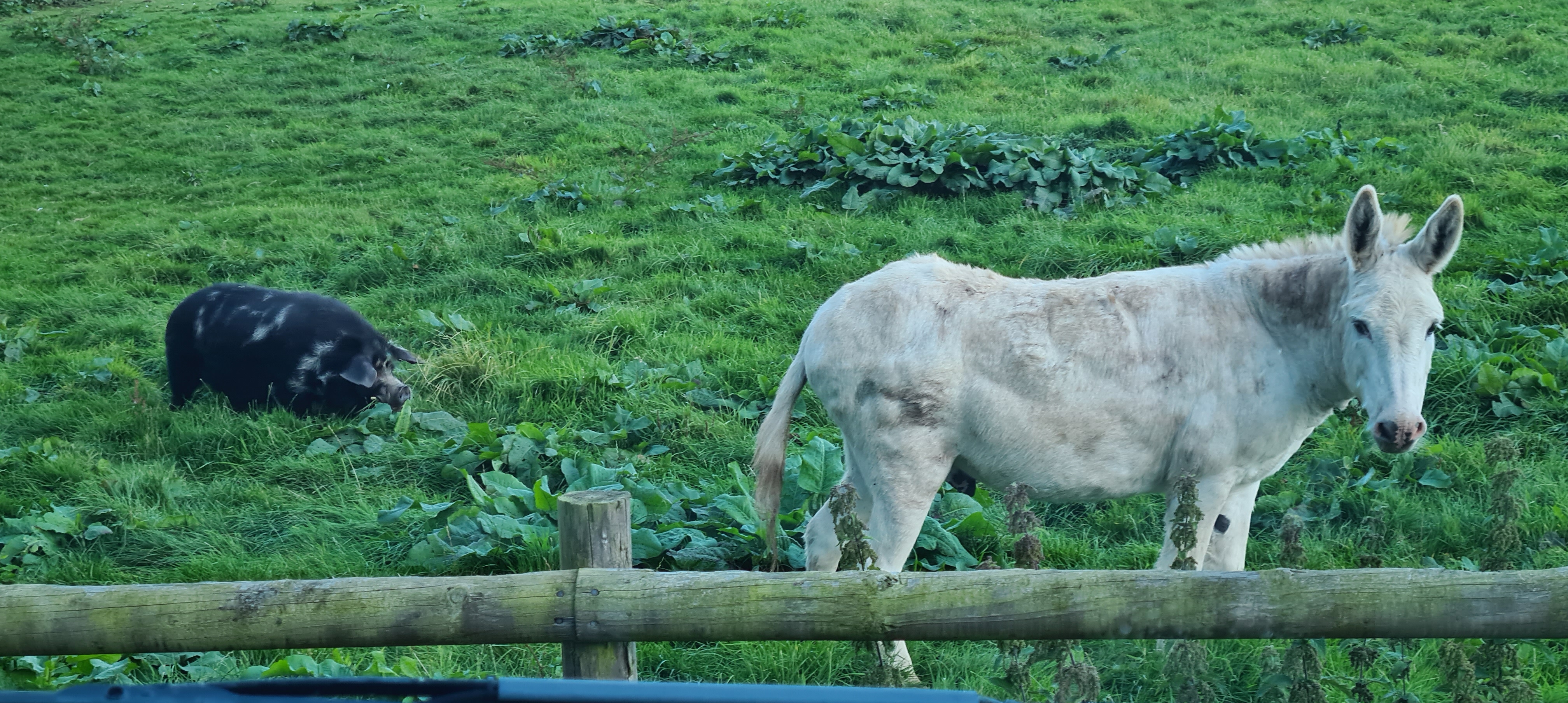 We have even set off again on another trip – which wasn’t my intention before publishing the blog but what can one do if you can’t get the tools to work! We set off on Thursday, heading up to just ourside a little town called Stone in Staffordshire where we had booked into a CL at the back of The Greyhound Inn (£7.50 a night no elec). Arriving mid afternoon, the sun was shining and we were welcomed by the four beautiful donkeys, a few ducks and a really large pig – oh, and the staff at the pub were lovely too!!