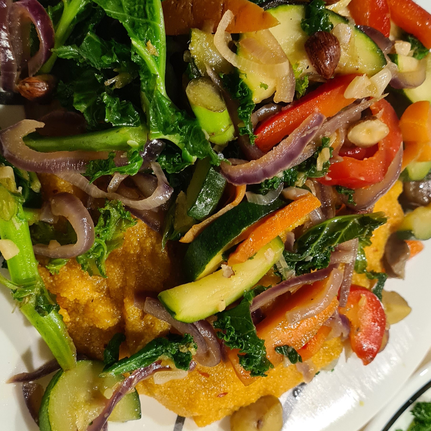 Harissa Polenta with Vegetables – My first use of Polenta… despite my apprehension, I was impressed by the speed, consistency and flavour