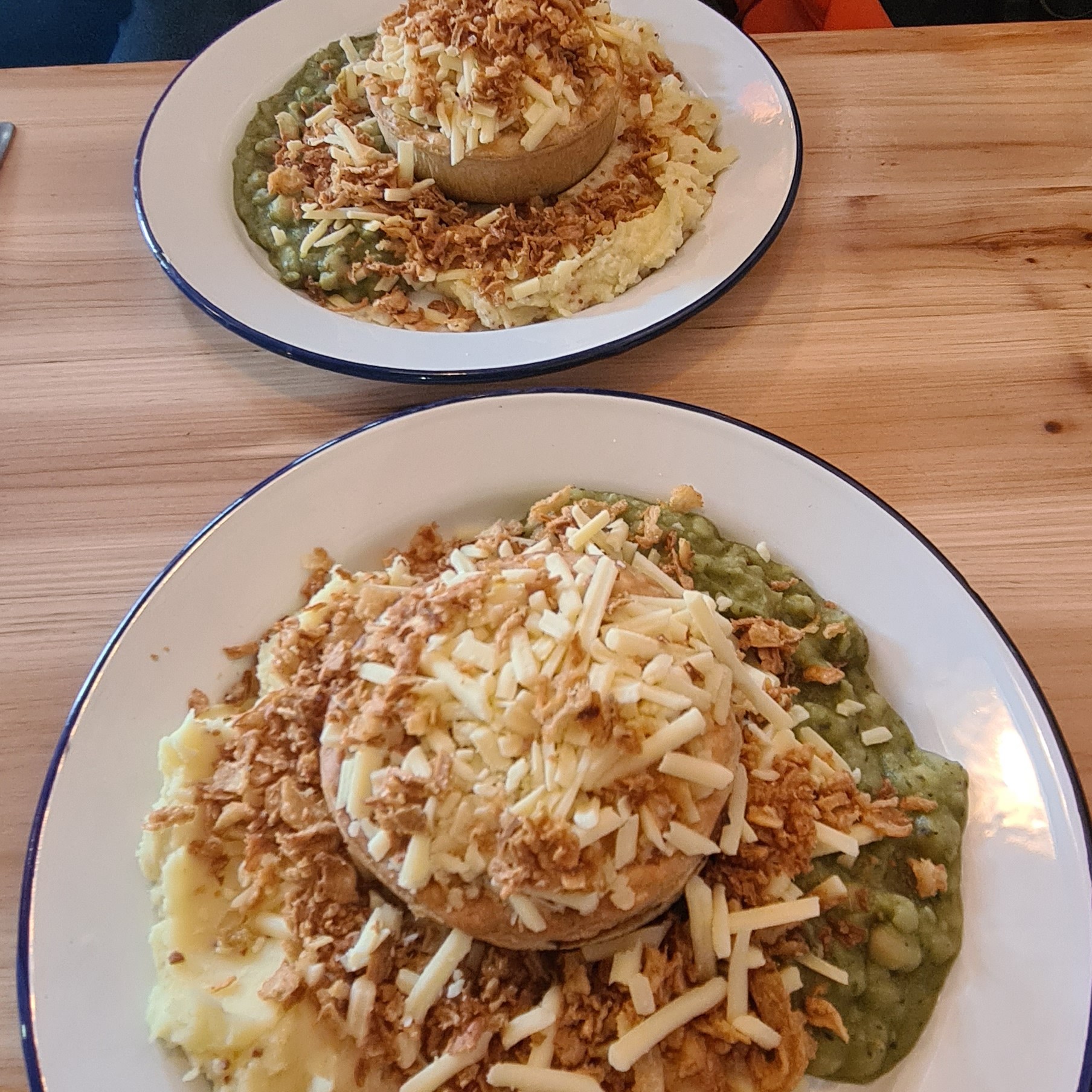 Whilst scanning the local eateries I fell upon a place called Piecaramba, a small Pie cafe just off the main thoroughfare and we figured it would be wrong to pass it by and not try bearing in mind the pies looked so good. The cafe was basic but adorned with comic book characters – the toilets being a little haven for Star Wars fans! As we walked in, the table in front of us had just been served a double pie which looked amazing (one pie stacked on top of another, accompanied by all the trimmings)… however, we both opted for singles but with the crispy onions, grated cheese, mash and mushy pies….leaving a little space for the cherry pie with custard for dessert.. not culinary delights, but certainly good hearty food.. a nice little pit stop!
