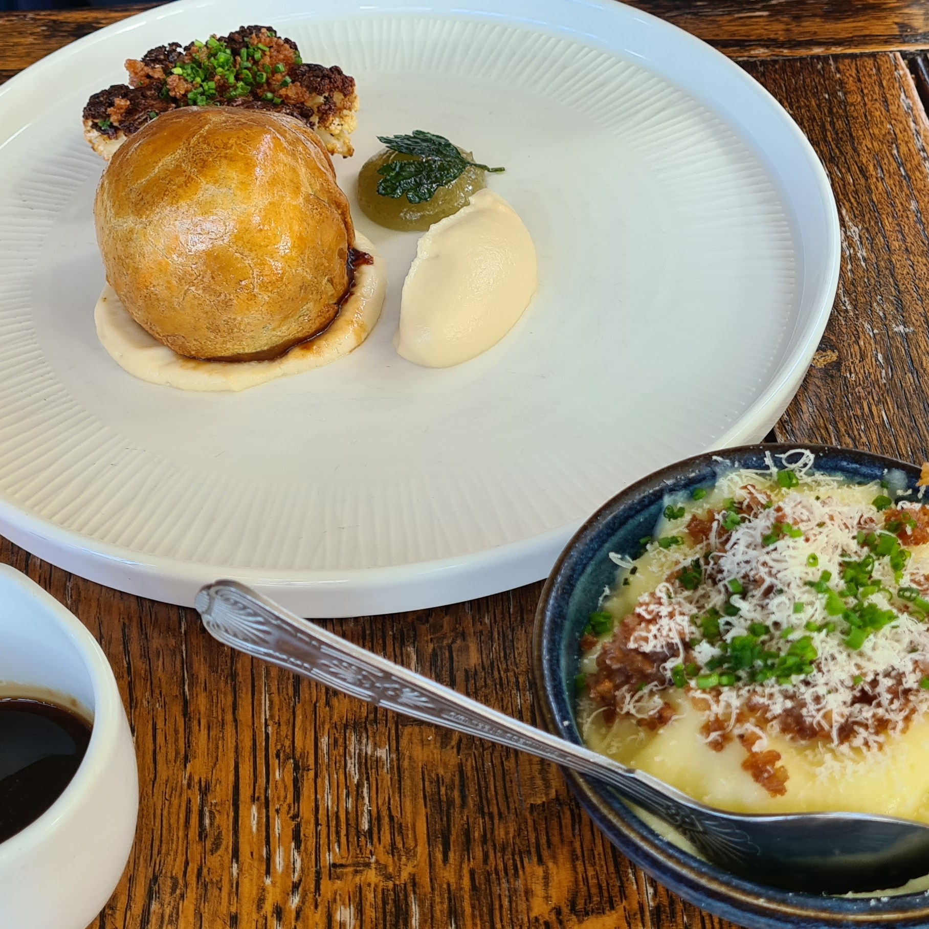 We had found a campsite (Lytton Hall, £25 per night inc.) which happened to be just round the corner from some friends in Everton so were able to not only catch up with them, have some lovely walking exploring the area a little more, but also endulge in some lovely cuisine…. If all waffles were cooked like this one – I would be a convert… gruyere and parmasan cheese mixed in but so, so light and the liquorice ice-cream for the pre-dessert was also fantastic. Both fish courses were cooked exceptionally, the only negative was that both were quite one dimensional in texture and very similar in flavour which was a shame, but worth the visit.