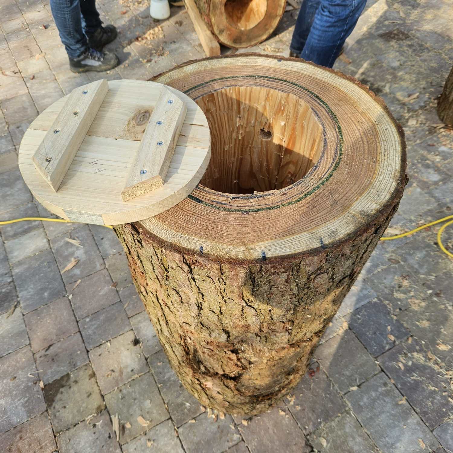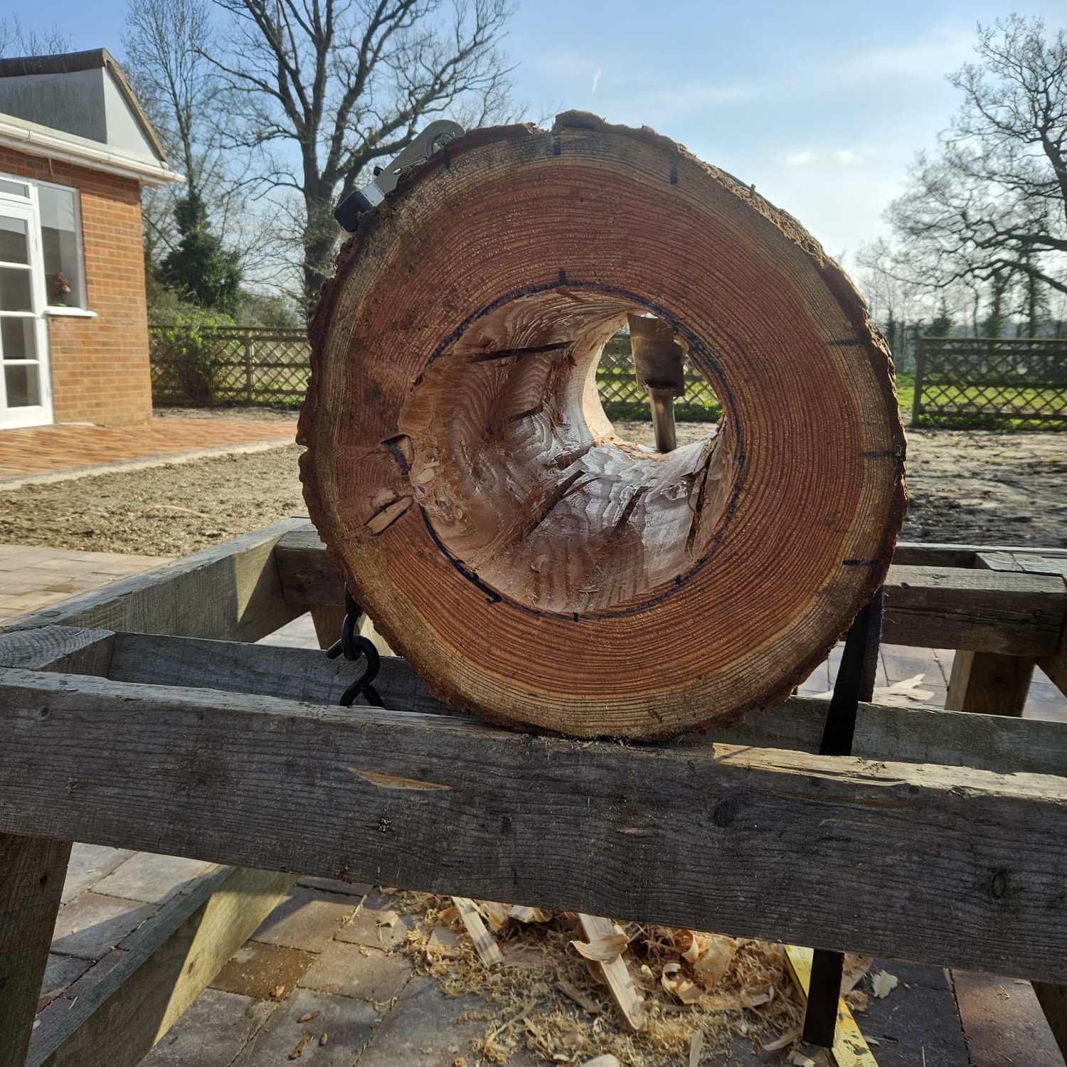 I had found a Natural Beehive making course a while ago that was being run at a local bio-dynamic, organic farm in White Waltham which is where we buy our Vegetable box from when they are open for the season. It was an unusual but interesting course, with the objective being to provide a wild hive for honey bees to populate and make into their home, encouraging pollination naturally. Keith set off prepared for a full on day’s work but I don’t think anything would have prepared him for the size of the tree trunk that he was carving out and turning into a hive…. just to put the pictures into perspective, the tree trunk only just fitted into the boot of the VW Golf and weighed in somewhere between 30-40kg once hollowed out. A really interesting day – albeit apparently quite hard work…. I didn’t go. The Wild Beehive has been donated it to the farm – all we need to do now is get a cap sorted for it and work with the farmers to get it hoisted into a tree where it will live and hopefully become a home for a new honey bee colony.