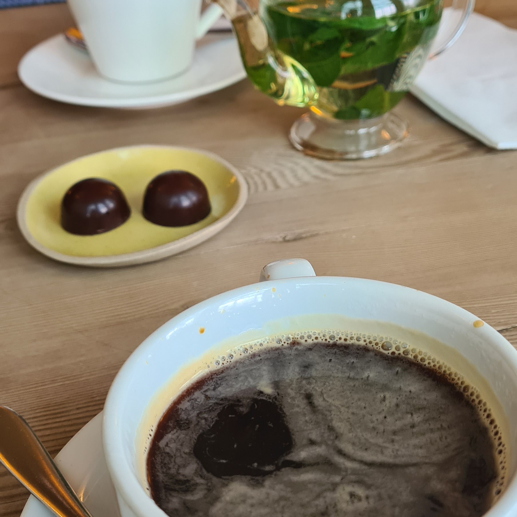 The food was excellent – everything from Beluga Lentils with Foie Gras and Smoked Salmon for starters, scallops and a beautiful fish dish for mains, through to a deliciously light cheese eclair….. and those desserts were to die for – unsurprisingly, the restaurant was full on Friday lunchtime.