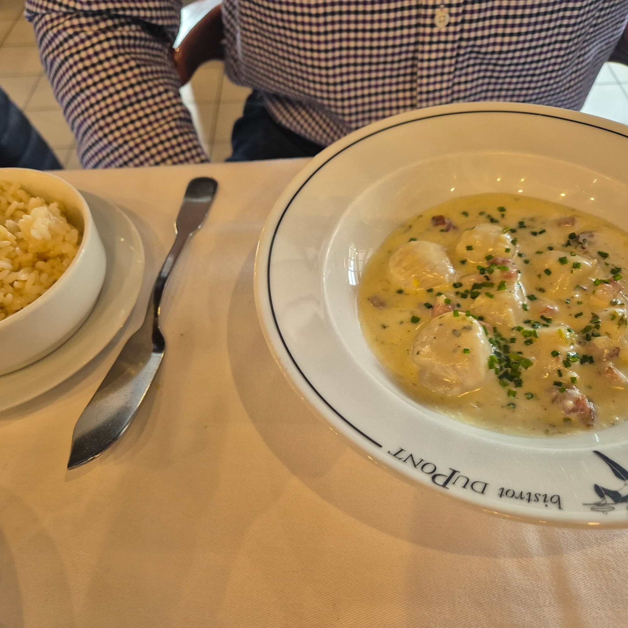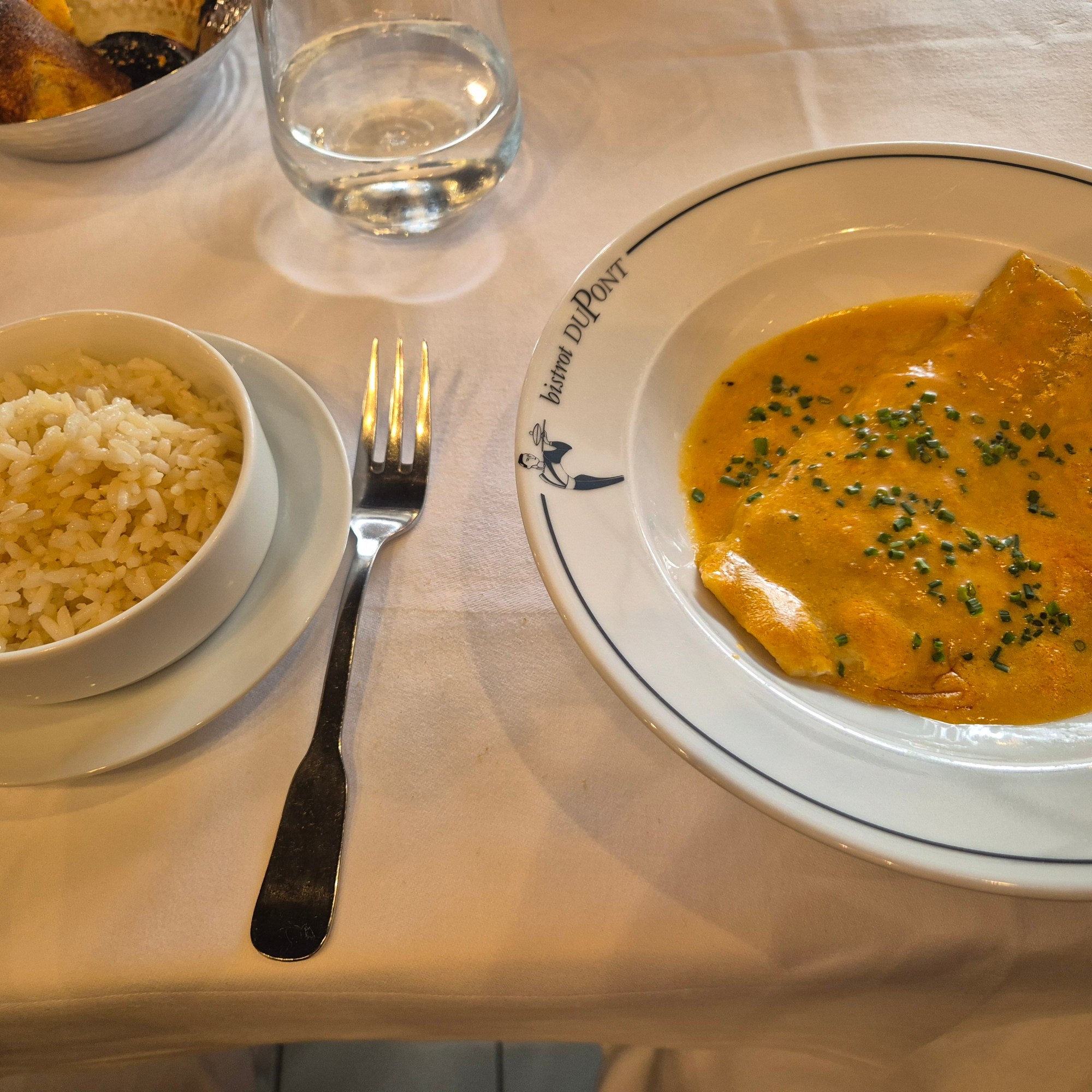 When Keith was looking at the aire he happened to see that there was a restaurant – Bistro DuPont 500m away that had reasonably good reviews which got me looking at options nearby… and it turns out that the restaurant he found was a Michelin Bib Gourmand with several nice looking set menus – which the french do so well, so we thought it would be rude not to try – especially as they could adapt one of their menus to a difficult pescatarian!