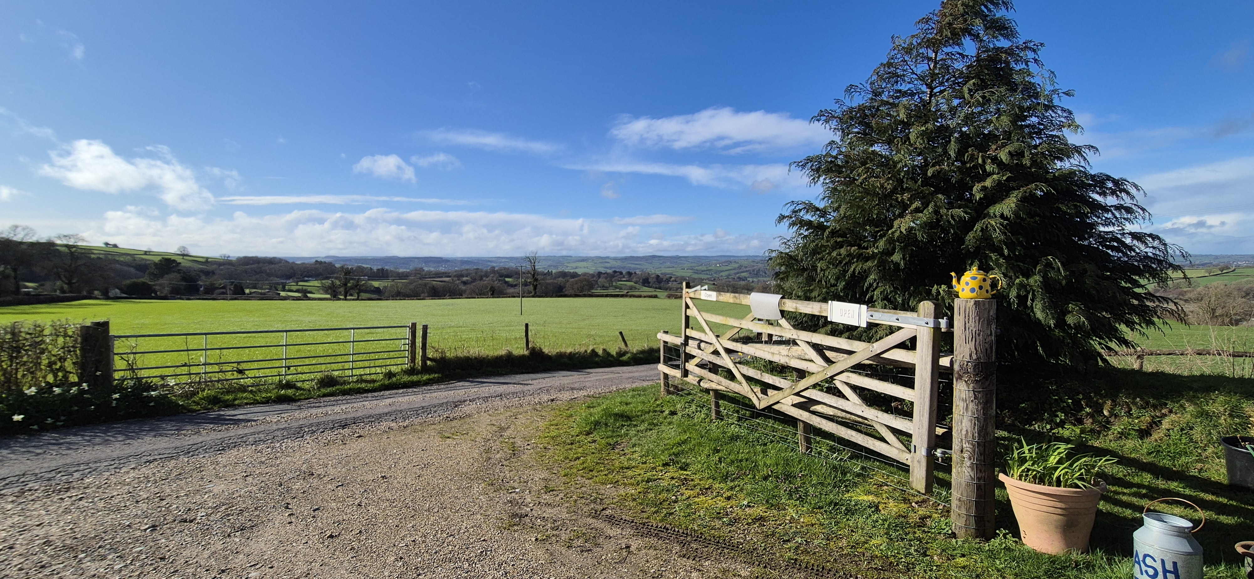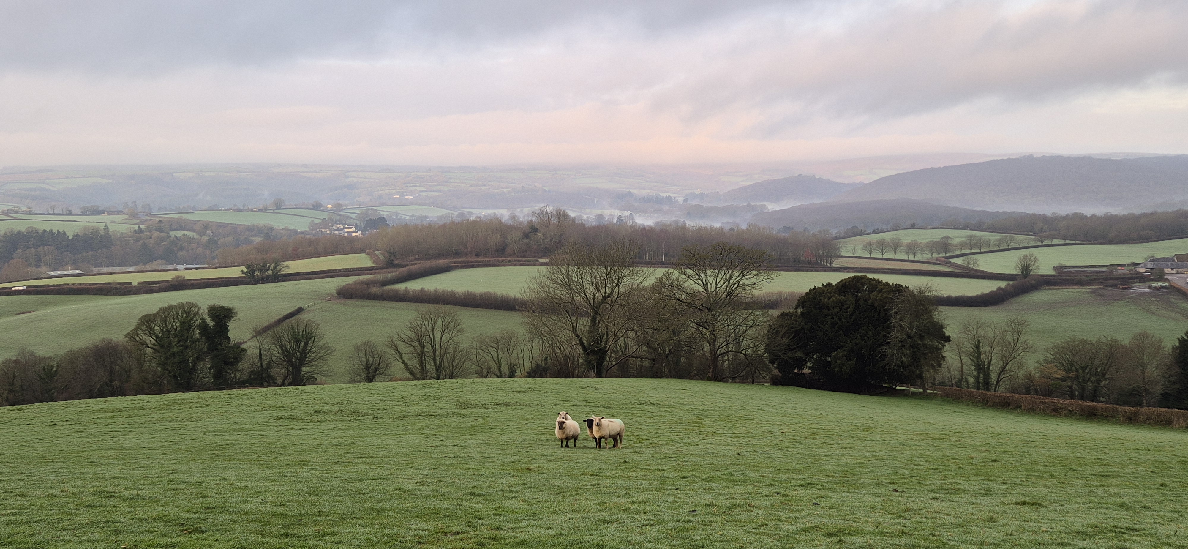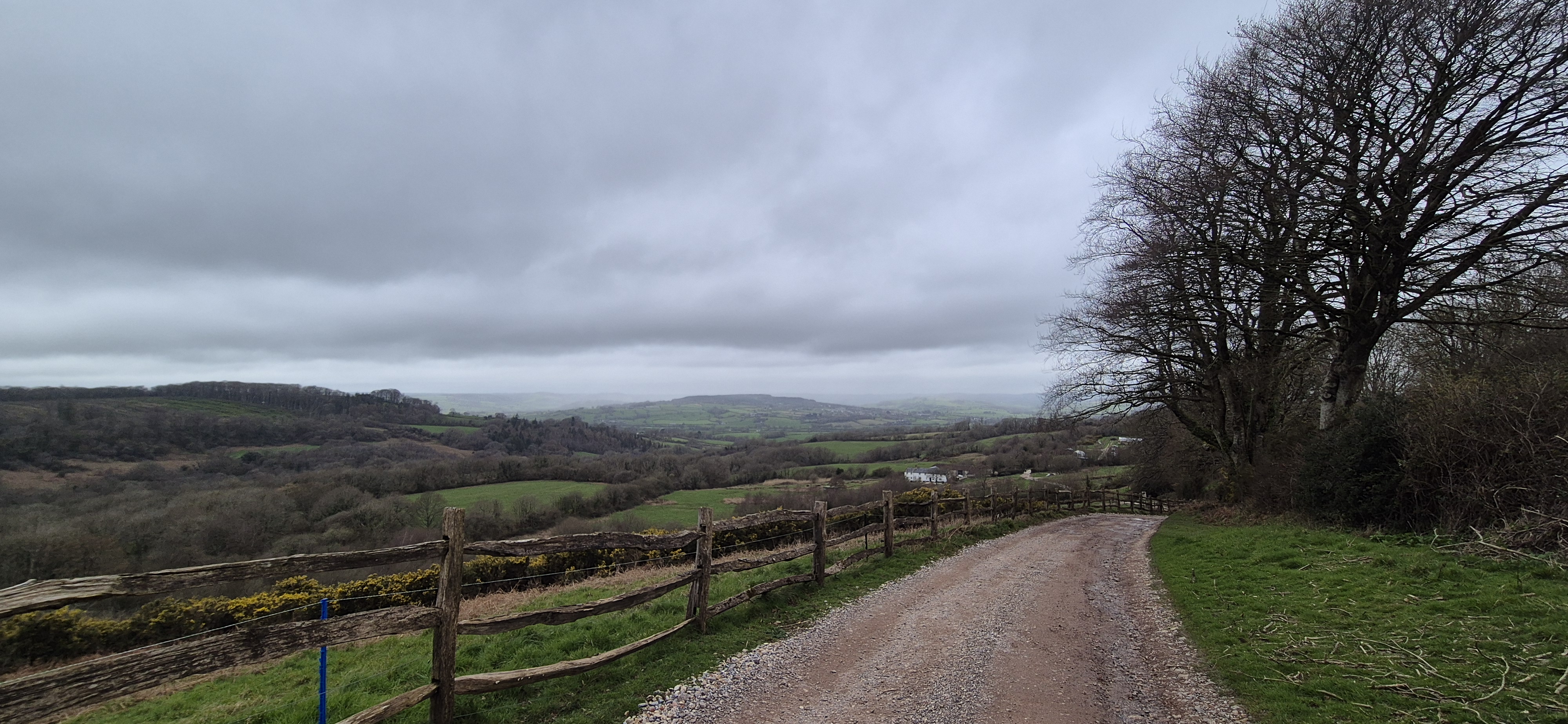 On Sunday morning it quickly clouded over and the rain was looming, but we donned the waterproofs and headed towards River Cottage for lunch. The rain held off until we were just entering the barn and the walk was lovely – albeit along a road – taking in once again very different views from what we have had the last couple of days.