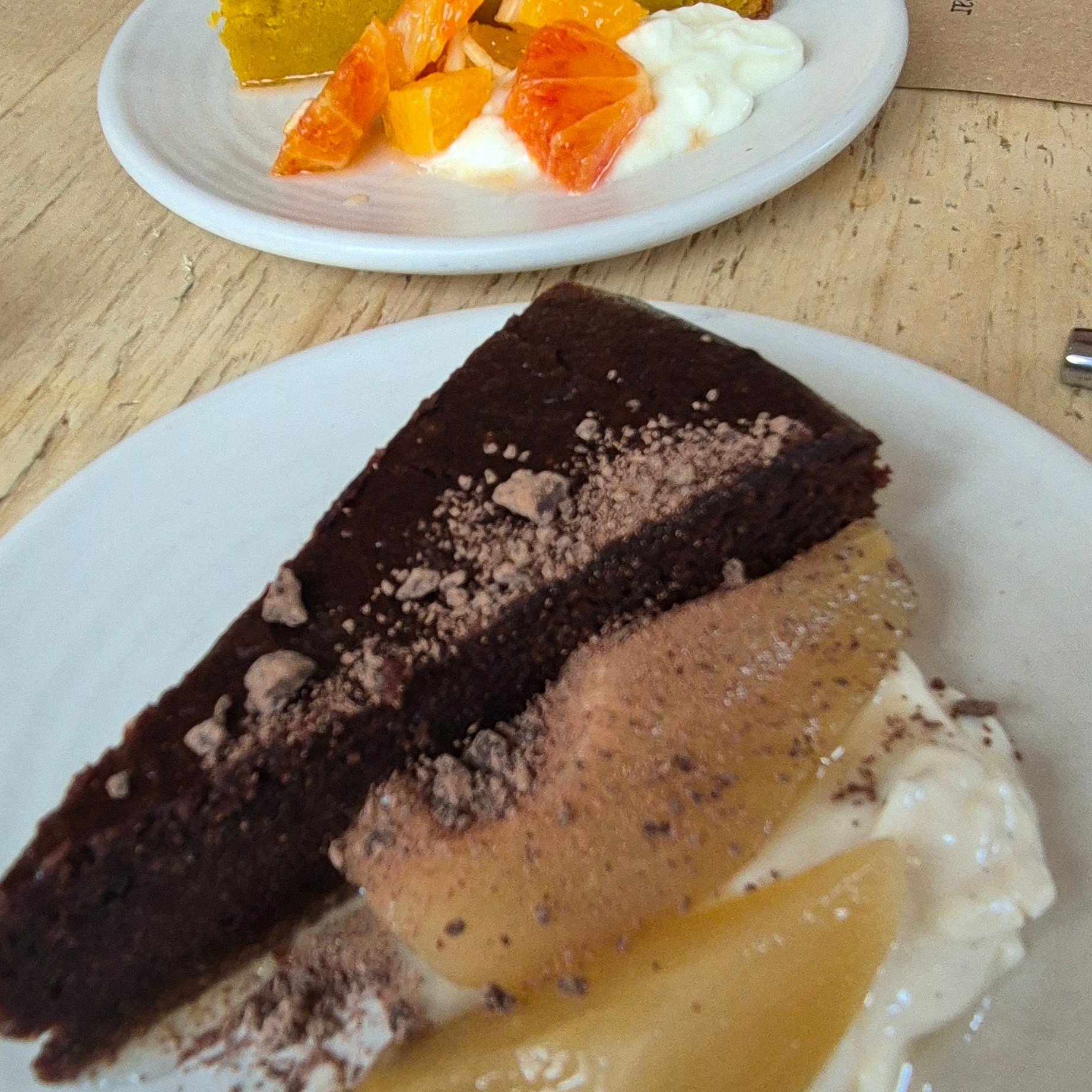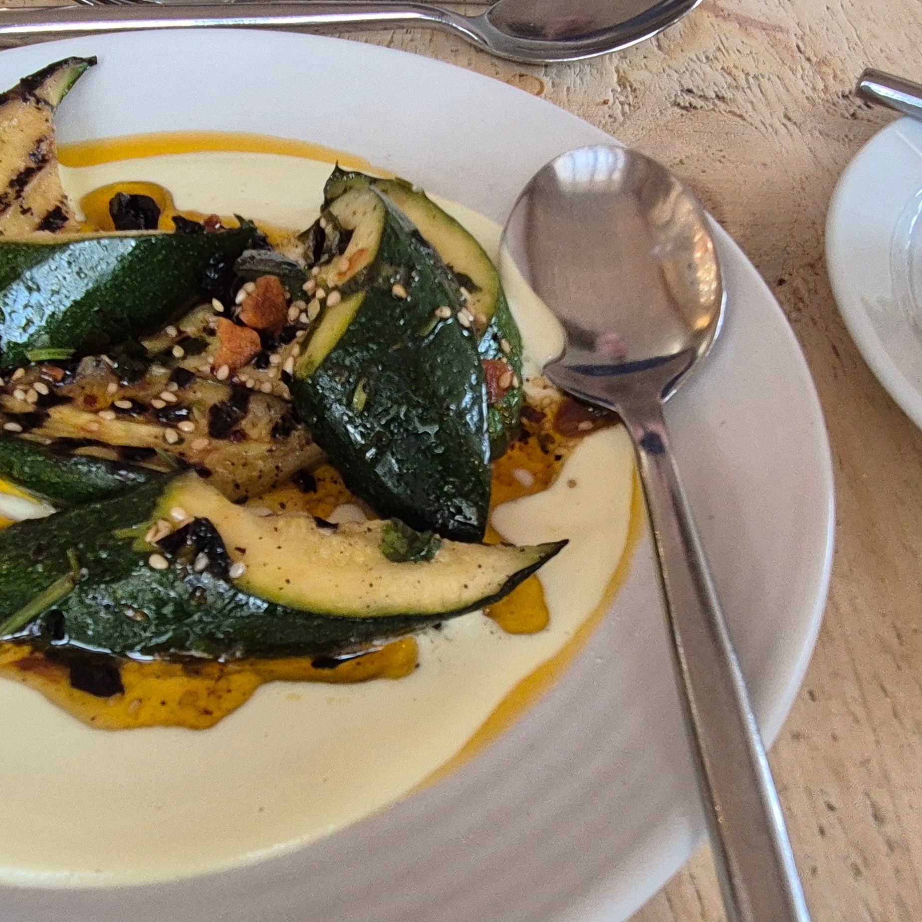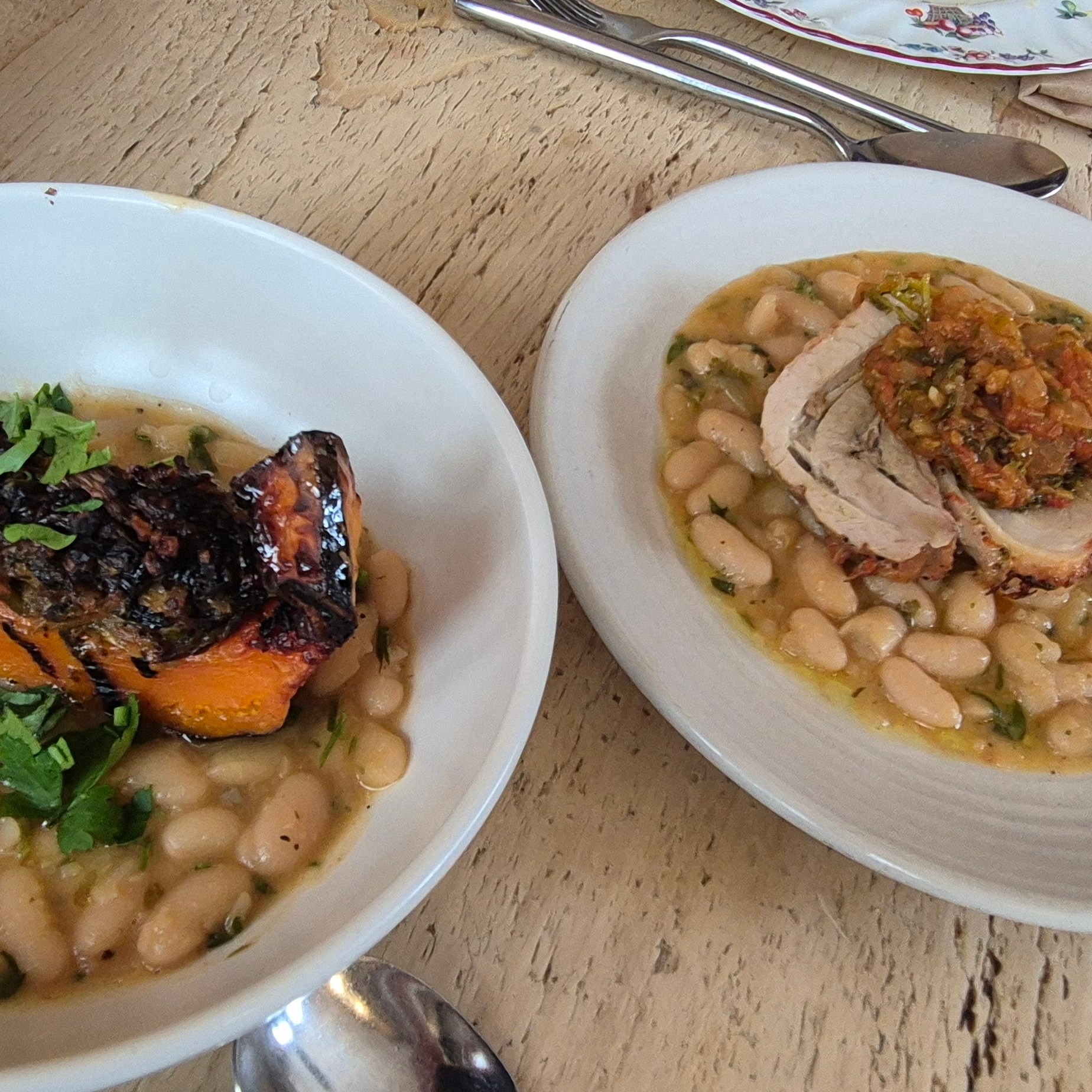 Lunch was as delicious and as varied as the landscape was beautiful. The restaurant was full with a lovely buzz of an athmosphere, and the dishes celebrated the best produce of the season – squash, courgette, aubergines and blood oranges as well as some of the Riverford Organic Porchetta. A true celebration for the tastebuds.