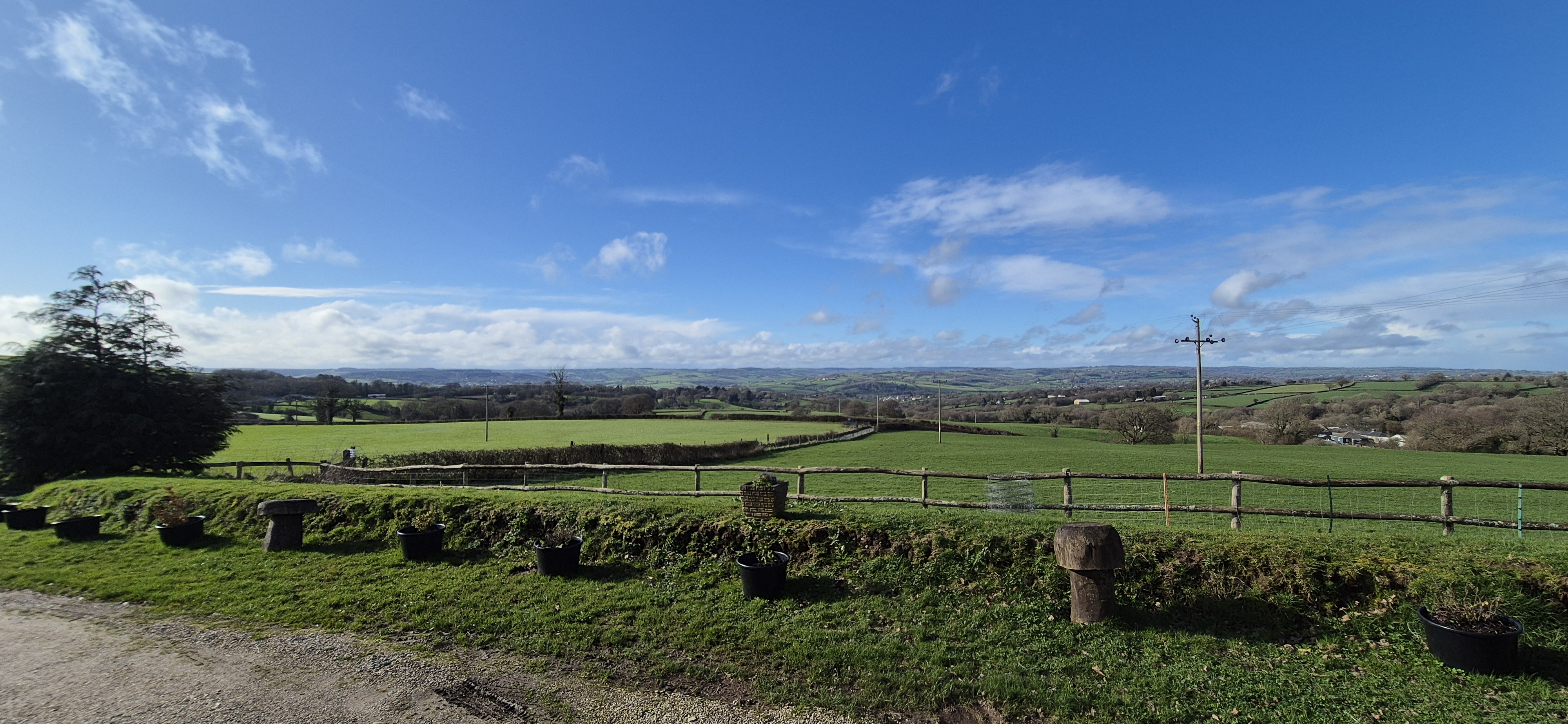 Not wanting to be stopped, we donned the waterproofs and headed the 600m up the road to the garden center which had really good reviews – and to be fair, it was fantastic. A great ‘local’ farm shop and butchers and a lovely cafe which overlooked the rolling hills and valley – apparently, as we couldn’t see much further than a couple of hundred meters!!