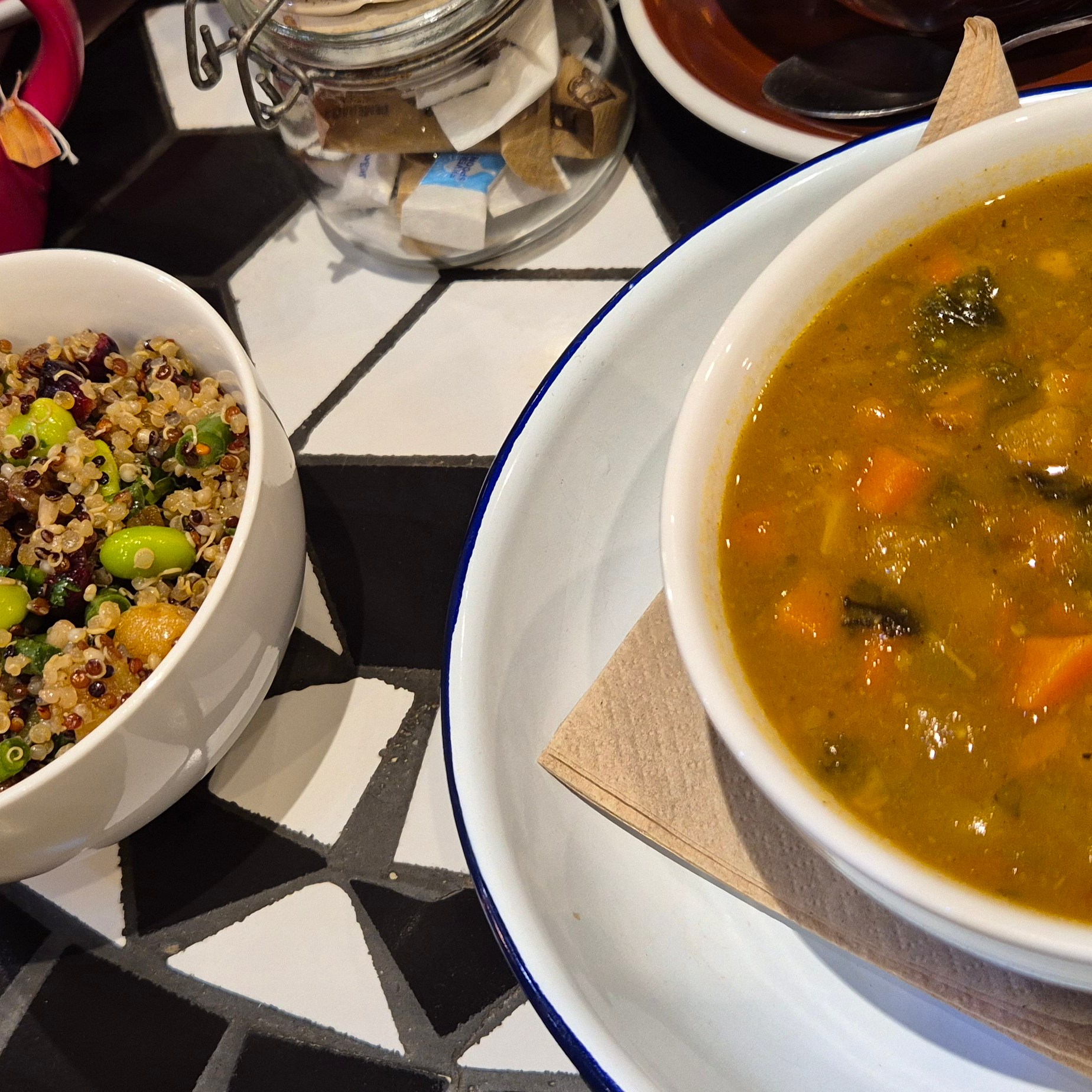 Babaganoush has two cafe’s – one says it is more of a soup kitchen, but only does vegetarian food, the other has some meat and fish too. All the food though is home made, plant lead and rusticly delicious. Keith and I had quiches, salads and soups, followed by a Bakewell tart type slice and a carrot cake….our kinda food!