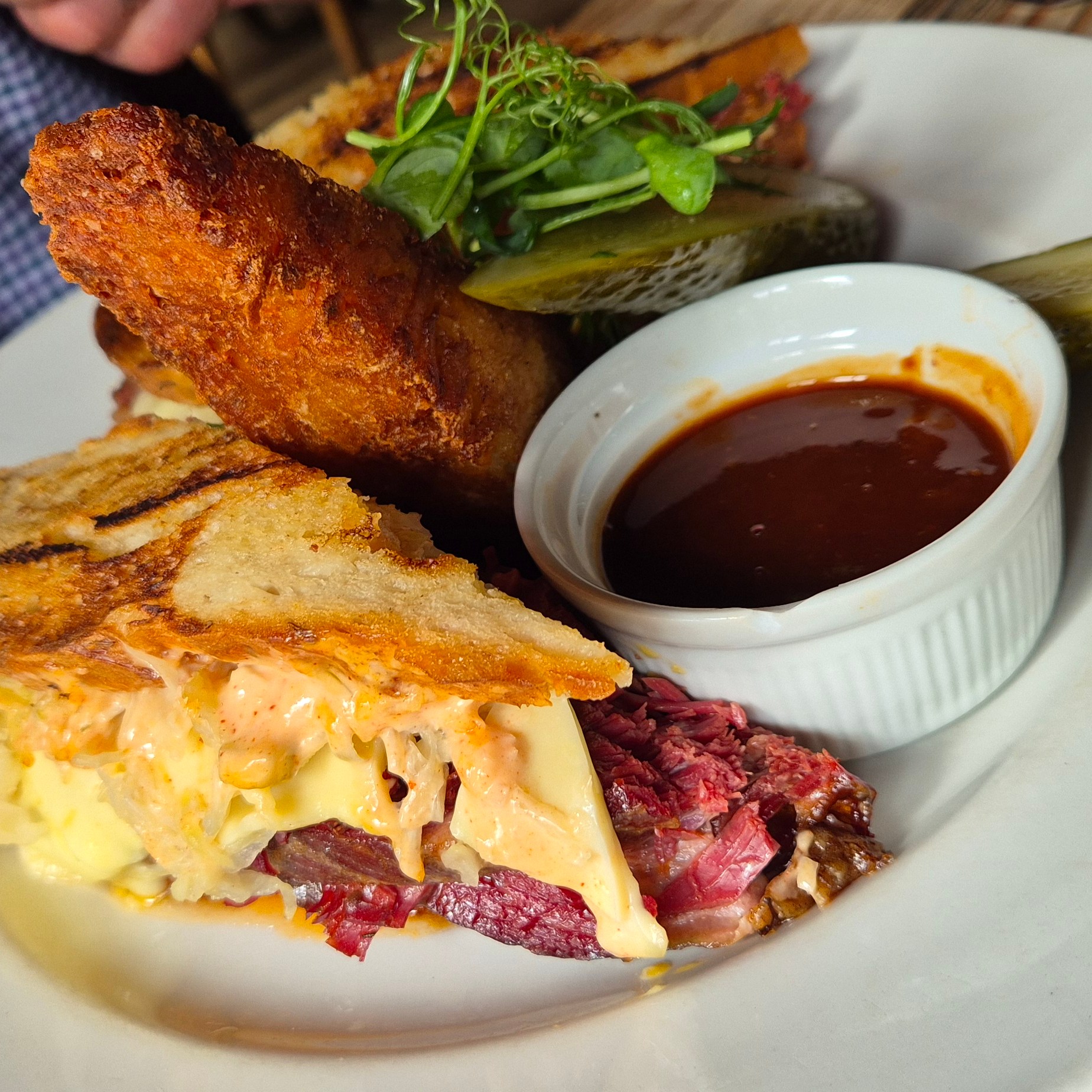 We went back to the London Street Brasserie, and also The Crooked Billet (Pictures below) – both of which were excellent,. Keith had an incredible salt beef sandwich with hash brown for his main, and yes, a slightly quirky take on the cheeseboard for desert…. hot cross bun, cheese, chutney and apple!!