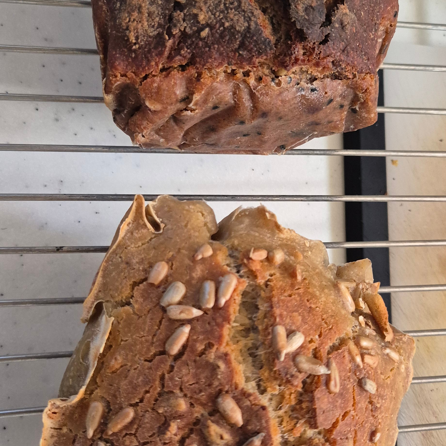 – Two halve loaves, GF Sourdough and Spelt Sourdough in one tin….both of us managed to have bread, Keith was the old style but in loaf tin instead of rolls, full of nuts and seeds, mine was the GF option just with a few added pumpkin and sunflower seeds. It worked really well!