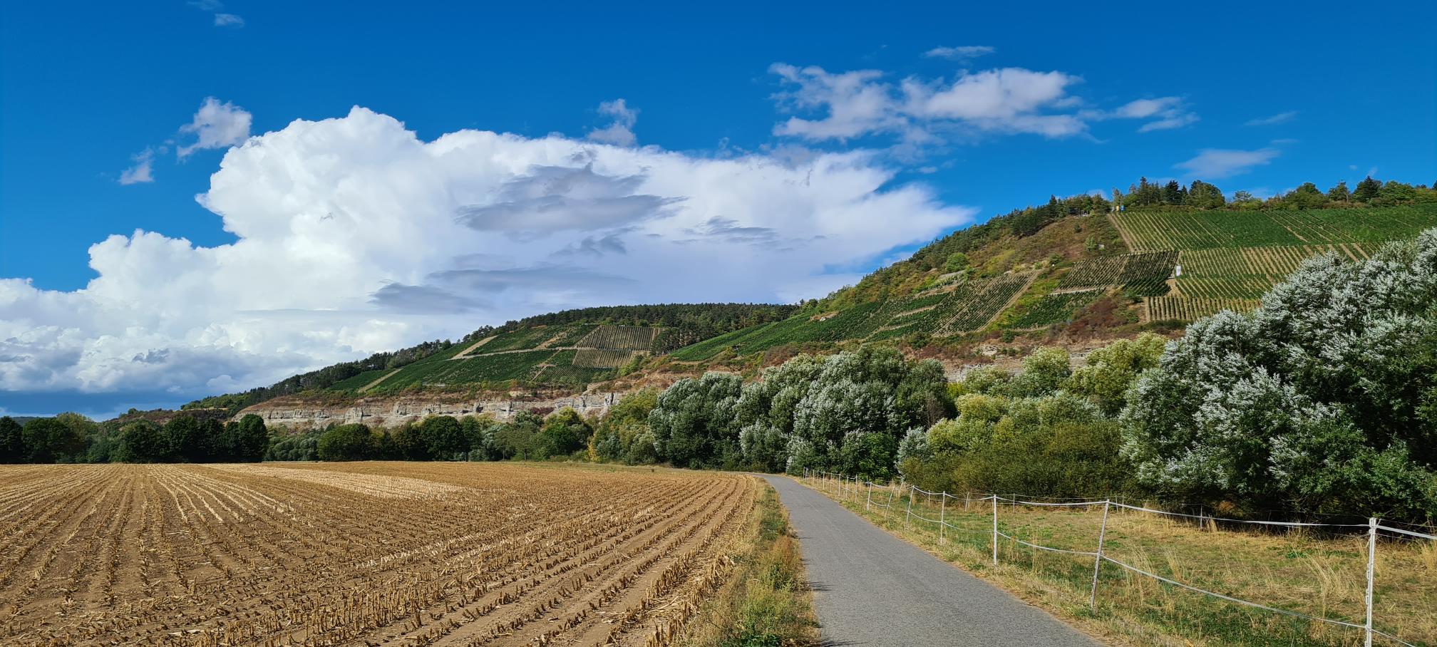 As we rounded the corner and headed back towards Sommerach the weather quickly changed and the dark grey clouds were looming in the distance. They didn’t ‘loom’ for long, instead they just let loose and gave us a good drenching. Thankfully we had our waterproof jackets, it was warm and we weren’t too far from the town, so after a couple of ‘Pit Stops’ en route to do some tastings and a little bit of sun – once it made a re-appearance – we were a little drier….. or perhaps just didn’t care!!