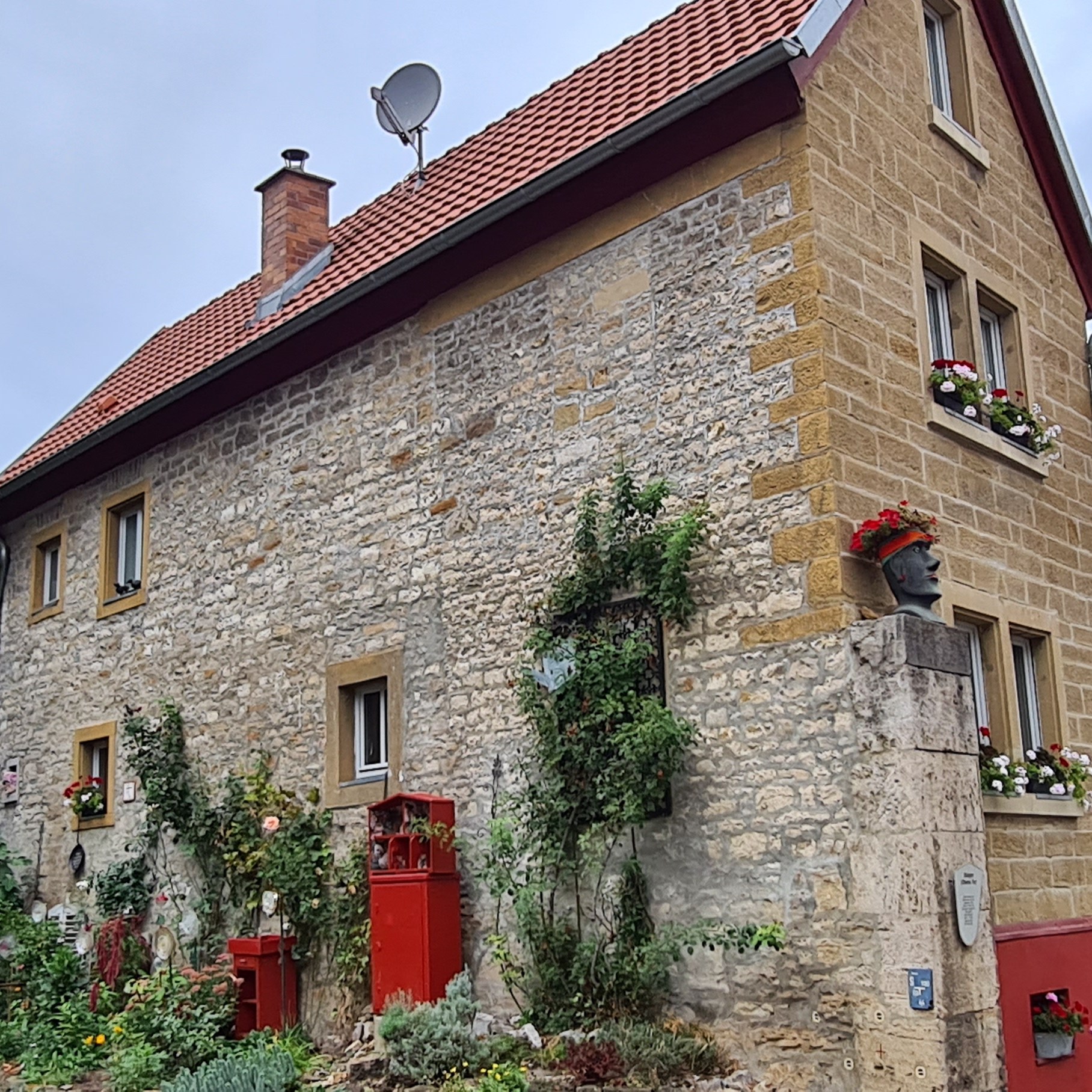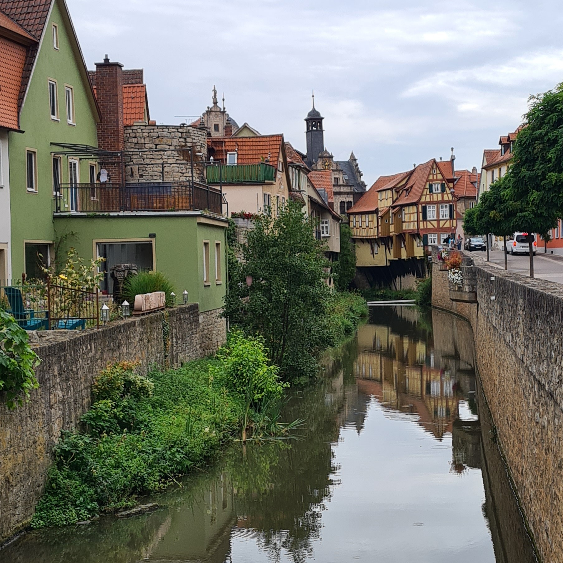 Although Mainbernheim is pretty, it is a little rustic and to be fair in a bit of a ‘renovation’ phase as there are road and building works throughout…..Iphofen is however, the refined, beautifully finished version. The town has a double wall and a moat – obviously showing wealth going back along time – and now has a lovely path and park area that you can follow all the way around it. Inside the wall is chocolate box like, with all the buildings maintained to perfection. We were incredibly lucky as everything always looks better when the sun shines.