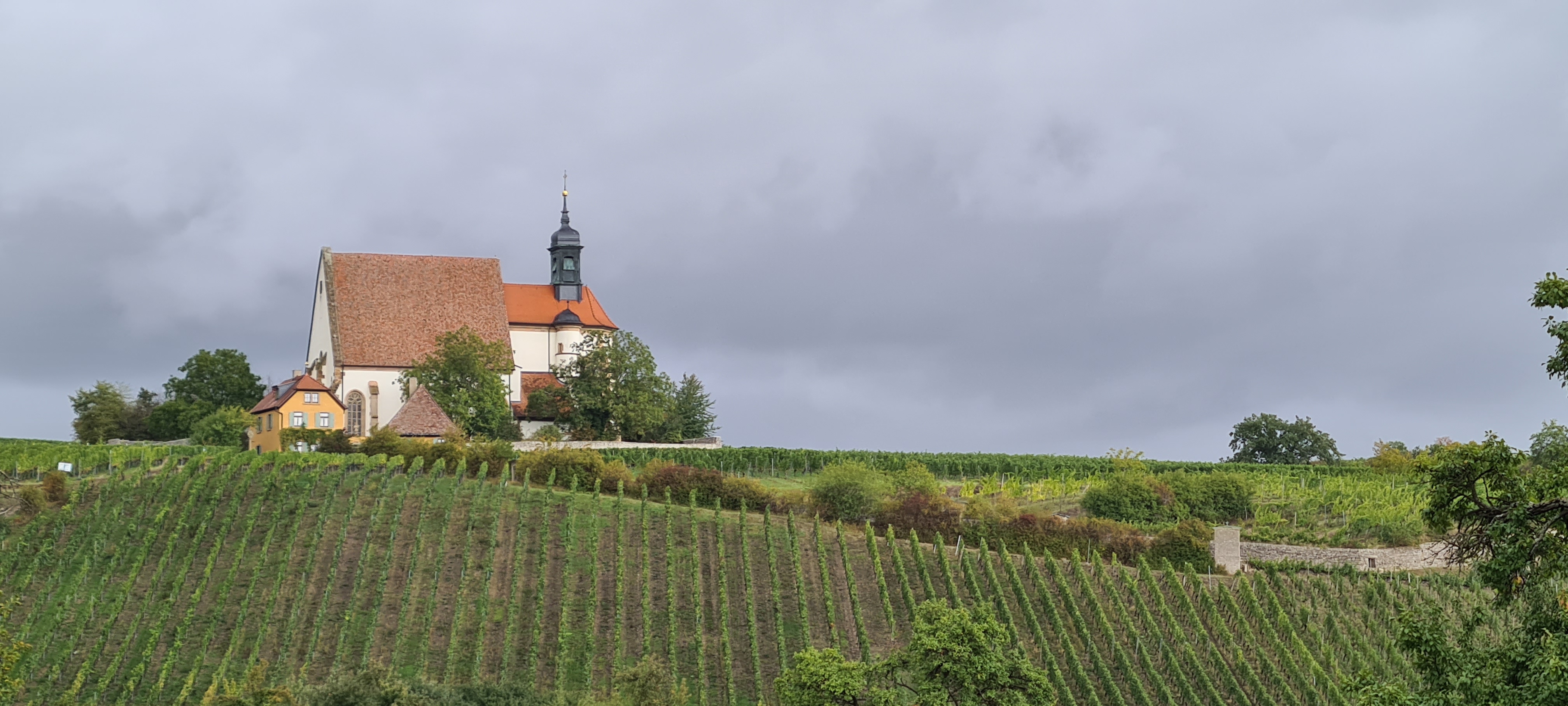 We moved all of 20km down the road which took us to a Hamberger Weiner – a Vineyard located in the middle of several beautiful little walled Bavarian towns – Iphofen, Rodelsee, Mainbernheim and Kitzingen. As well as selling their wine, they also have 15 places for motorhomes up to 10m looking out onto the vines for 10euros a night…. along with an honesty wine fridge….