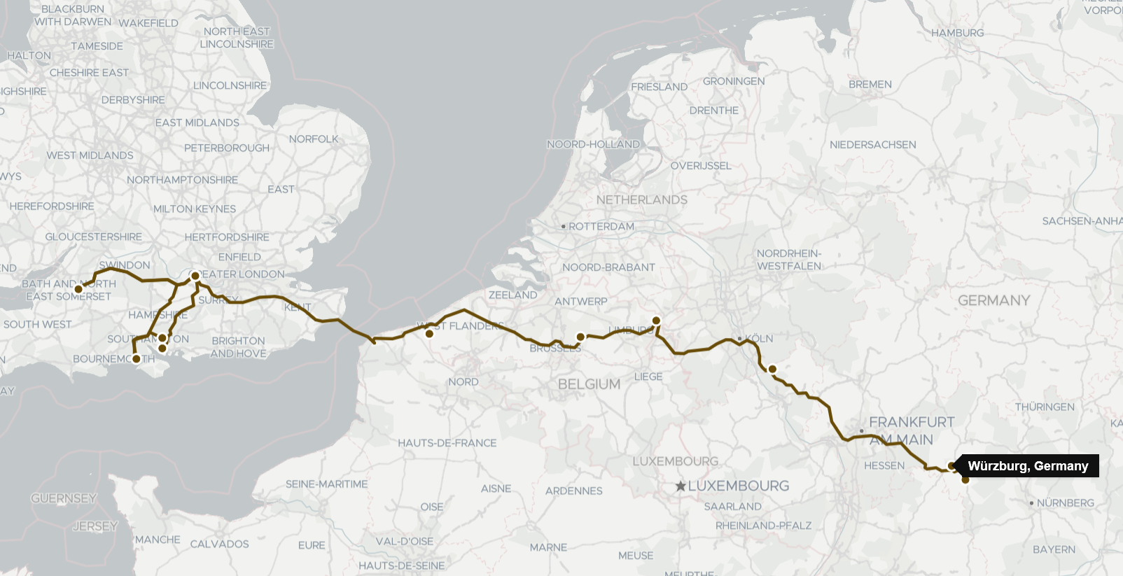 We moved on from Werchter on Monday to take advantage of the long holiday weekend to travel past Frankfurt whilst the roads were a little quieter. So a long hop, skip and a jump – for us at least – and we got to our destination for the night in Alzenau, Germany where the Aire was 12 euros a night.